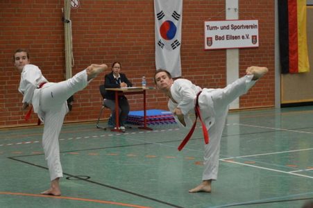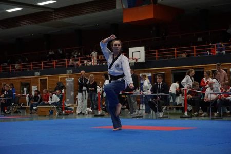 Taekwondo ist eine koreanische Kampfkunst, die sich durch ihre dynamischen und kraftvollen Tritt- und Schlagtechniken auszeichnet.