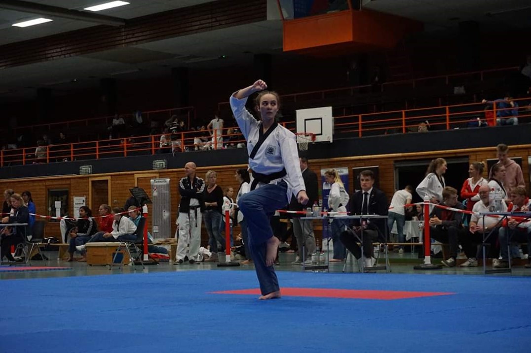 Taekwondo ist eine koreanische Kampfkunst, die sich durch ihre dynamischen und kraftvollen Tritt- und Schlagtechniken auszeichnet.